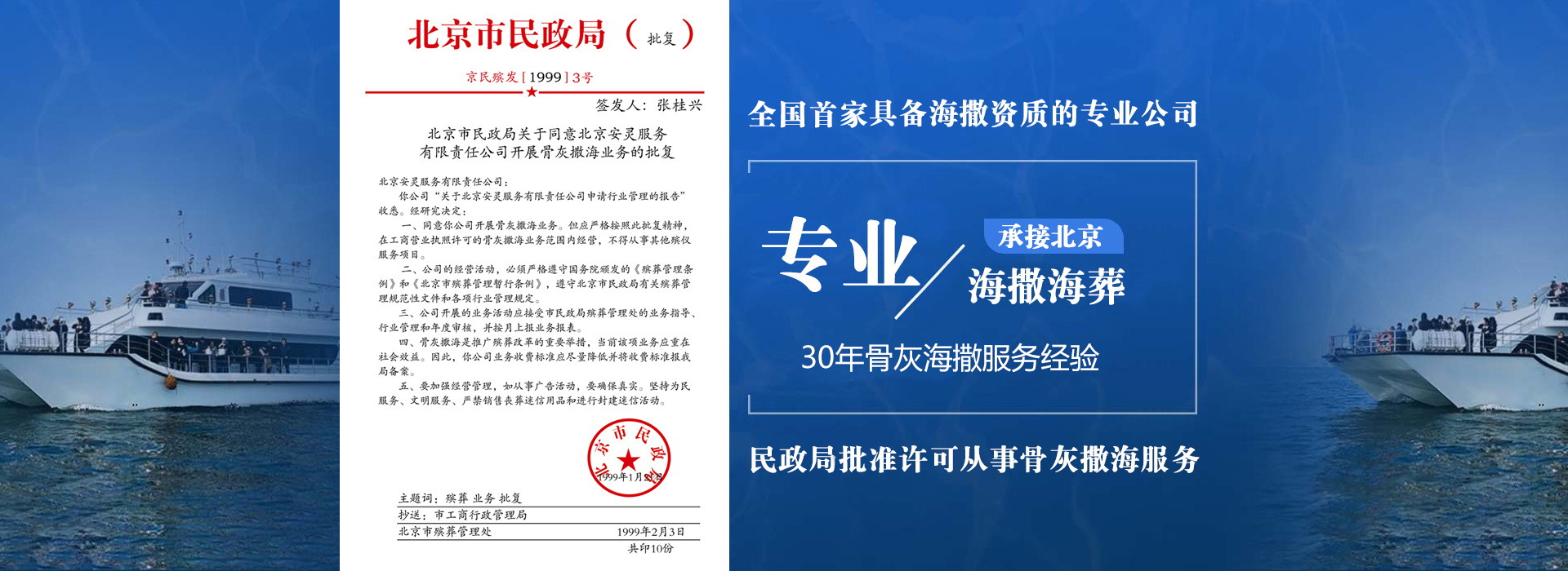 服务客户次数民政局批准许可骨灰撒海服务,全国首家具有海撒资质的专业公司!